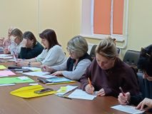 Шестая встреча в рамках Базовой площадки "Педагогическая мастерская "Навстречу" состоялась на базе МДОУ "Детский сад №7". Встреча по теме: "Методист тоже человек" прошла в неформальной обстановке. Команда Базовой площадки поделилась опытом по профилактике профессионального выгорания,познакомив участников с методами и приемами тайм - менеджмента, техникой рисования - нейрографика, провела игру с метафорическими ассоциативными картами.