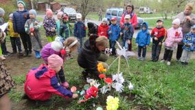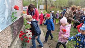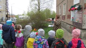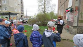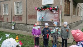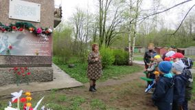 Воспитанники старшего дошкольного возраста, педагоги, родители прошли маршем памяти к мемориальной доске Петра Михайловича Петрова. Вспомнили о подвигах советского летчика, читали стихи о победе, смелости и отчизне героев Великой отечественной войны, почтили память Минутой молчания, возложили цветы к мемориальной доске.