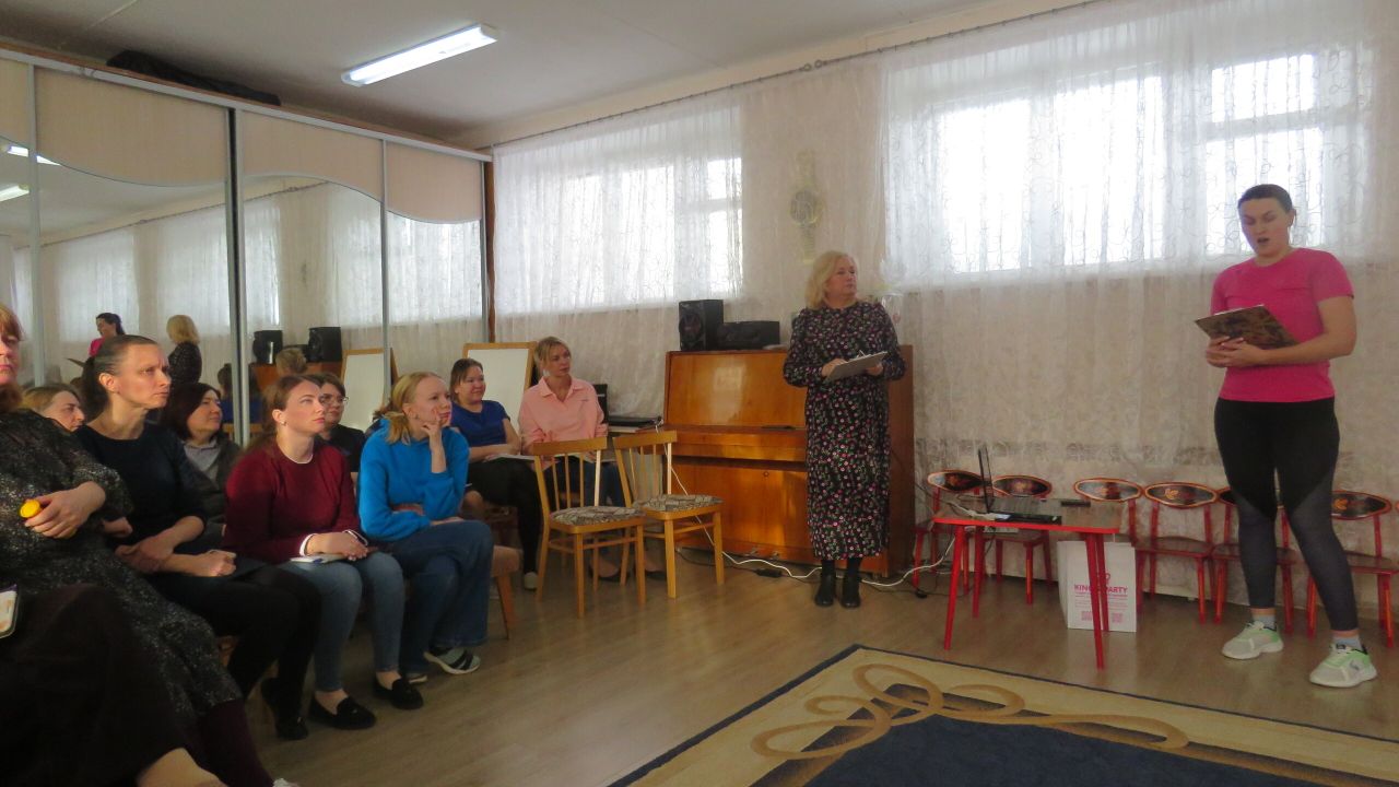 На педагогическом часу 11 февраля 2026 гоа инструктор по физической культуре Полина Алексеевна и воспитатель Светлана Владимировна рассказали об организации образовательной деятельности дошкольников по физическому развитию через театрализованную деятельность, познакомили коллег с технологией Н. Н. Ефименко "Горизонтальный пластический балет", провели мастер-класс " по сказке "Семейство домашних уютных тапочек", прием "Самолет".