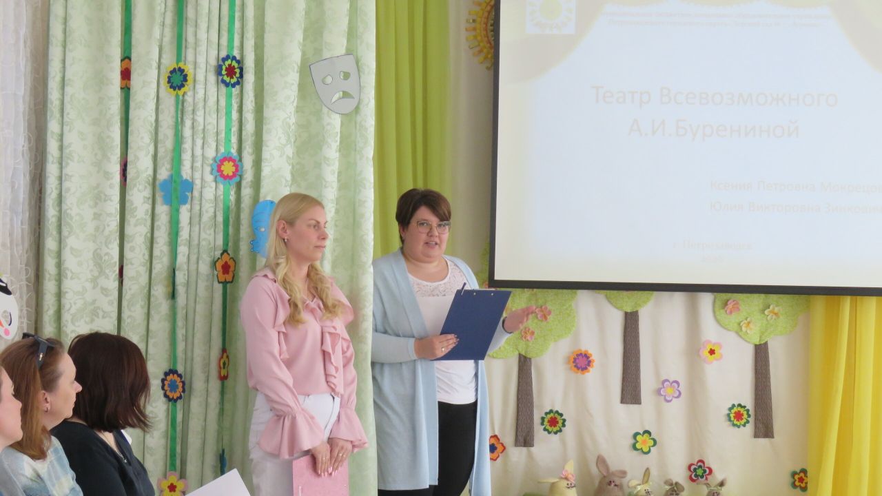 - Юлия Викторовна и Ксения Петровна по теме: «Внедрение элементов театральной педагогики А. И. Бурениной в образовательный процесс, как ресурс всестороннего развития детей среднего возраста»