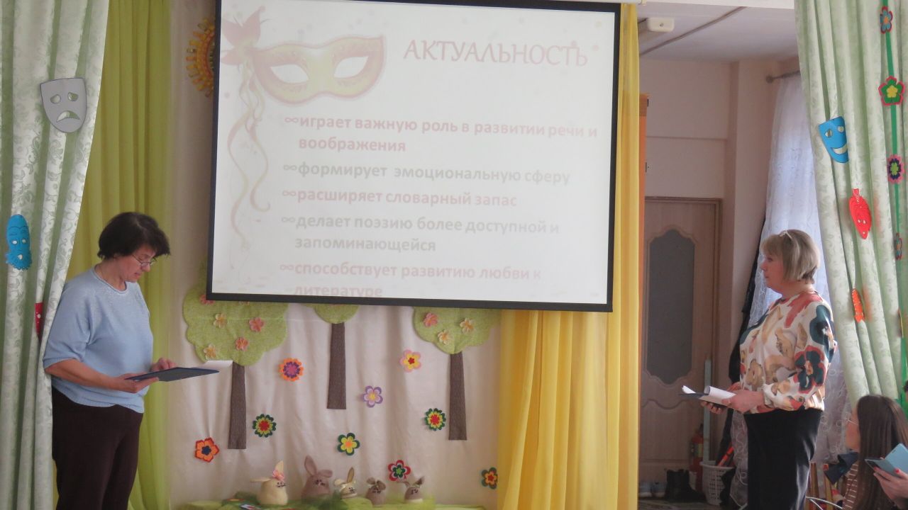 26 марта состоялся Педагогический совет № 3 по теме "Театральный калейдоскоп". Старший воспитатель Вера Иосифовна подвела итоги работы педагогического коллектива по реализации годовой задачи учреждения, провела игры и этюды. На мероприятии выступили с опытом работы педагоги: